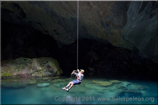 Alan touches the water - Abseil into a water filled Macropodidaes.